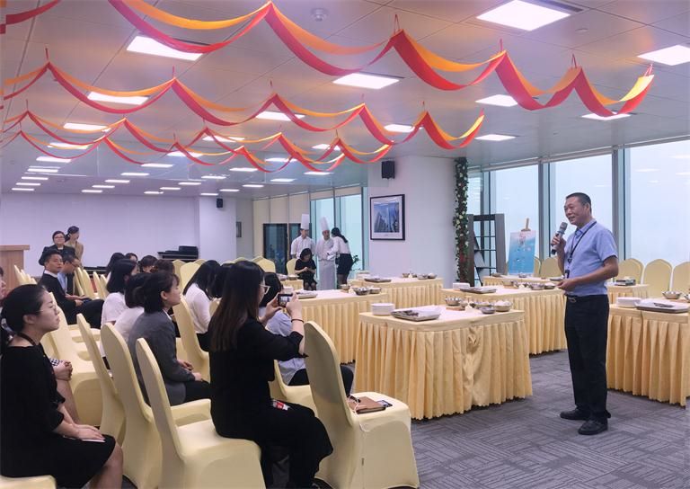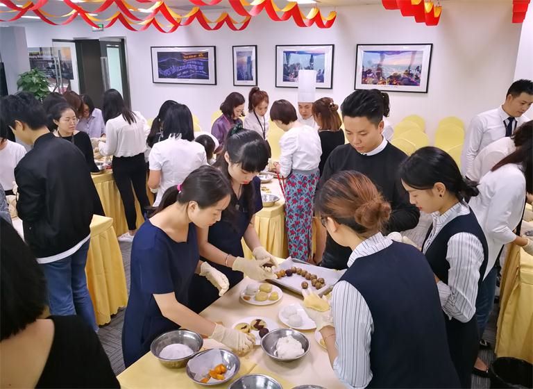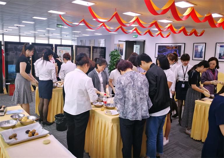 月餅派送結(jié)束后,物業(yè)客服部同事們緊接著著手布置49樓會(huì)議室的活動(dòng)現(xiàn)場,為第二場中秋租戶活動(dòng)做好準(zhǔn)備。午餐過后,第二場活動(dòng)參與賓客陸續(xù)來到活動(dòng)現(xiàn)場。第二場活動(dòng)為“中秋月餅DIY”,活動(dòng)開場由集團(tuán)副總韓永軍為到場來賓送上來自華迅的中秋祝福。致詞后活動(dòng)正式開始,活動(dòng)邀請的艾美酒店兩位大廚現(xiàn)場為來賓做月餅DIY的指導(dǎo),大家一同感受民俗傳統(tǒng),迎接中秋佳節(jié)?;顒?dòng)現(xiàn)場氣氛異常熱烈,來賓們都為自制月餅增添自己的專屬標(biāo)示。