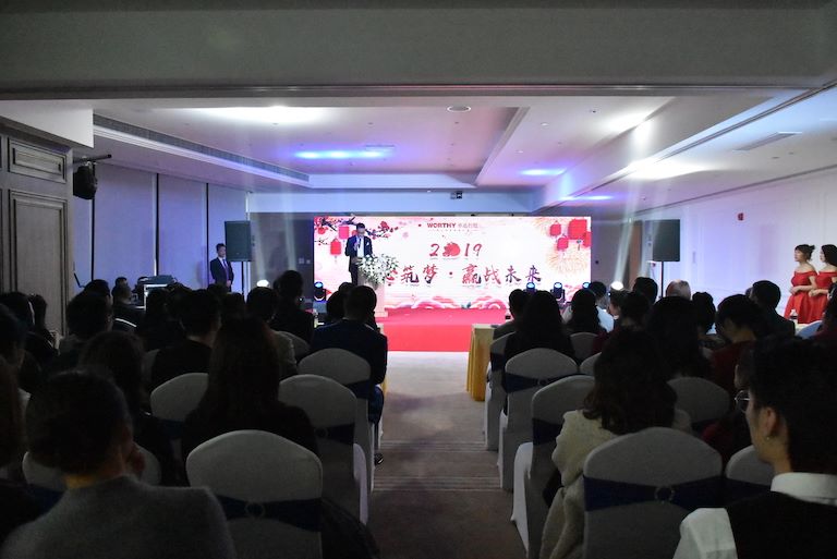 下午1600,集團新春團拜會準時開幕,集團200多名同仁一同觀看了集團2018年大事記,共同回味這一年來的努力和拼搏,發(fā)展與成就。隨后,集團總裁李鵬先生作工作報告,李總在講話中對集團同仁們這一年來的辛勤付出表示感謝,并詳細總結了2018年集團的經(jīng)營情況,明確指出集團現(xiàn)存的問題、不足及2019年各版塊的發(fā)展方向。