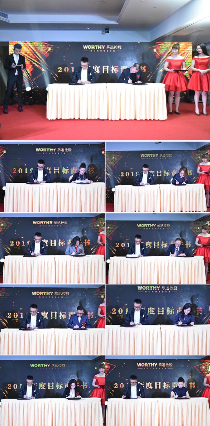 上圖:李鵬總裁與各版塊負責人簽署2019年目標責任書