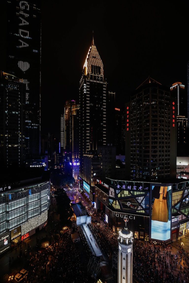 時裝秀當晚,解放碑中心的四面LED屏幕對GIADA大秀現(xiàn)場盛況進行了全程直播,重慶環(huán)球金融中心外墻巨幕也為GIADA全程點亮,普通市民也得以在現(xiàn)場共同欣賞時尚藝術。全國政商界名流、權威時尚媒體及GIADA頂級VIP均親臨現(xiàn)場共襄盛舉,為這場時尚品牌盛事畫下一個完美的句號。