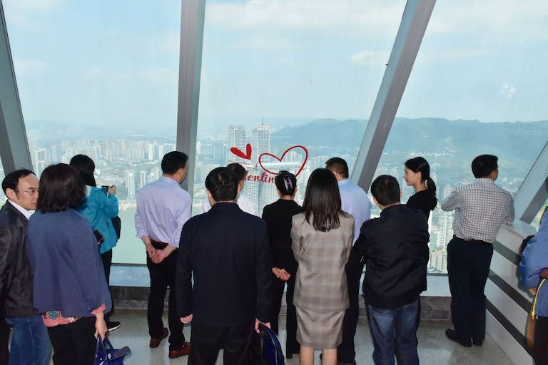 觀景臺保留了工業(yè)裝修風(fēng)格、融入現(xiàn)代設(shè)計、引進(jìn)文創(chuàng)品牌,成為以母城歷史文化為核心、以創(chuàng)新觀景體驗為載體的復(fù)合型商旅文產(chǎn)業(yè)項目,是重慶市目前最受歡迎的網(wǎng)紅地標(biāo)之一。
