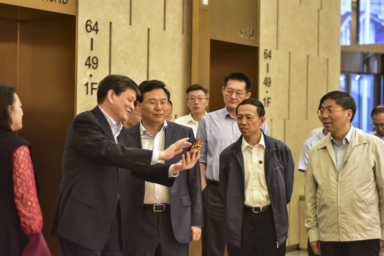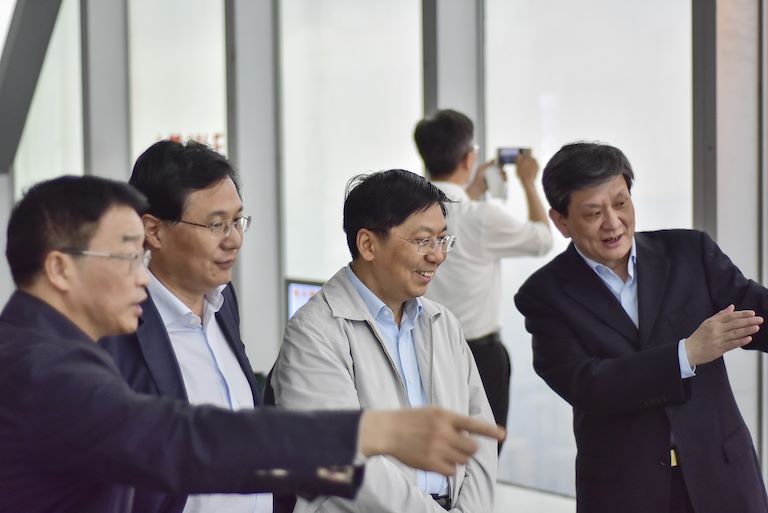 【華迅地產(chǎn)/總經(jīng)辦】5月28日下午,山東省省委常委、組織部部長王可,山東省省委常委、常務副省長王書堅率考察團在重慶市委常委、常務副市長吳存榮,重慶市副市長李明清,渝中區(qū)區(qū)委書記黃玉林,市政府黨組成員、市發(fā)展改革委主任、重慶高新區(qū)黨工委書記熊雪,市政府副秘書長羅藺,市政府副秘書長游賢勇,市政府副秘書長、市發(fā)展改革委副主任趙鋒等領導的陪同下一道蒞臨重慶環(huán)球金融中心觀景臺(以下簡稱WFC觀景臺)參觀考察,集團常務副總肖懋武,租售部營銷總監(jiān)高瑜,總經(jīng)辦主任胡麗娜,觀景臺運營總監(jiān)楊晉陪同參觀,并對領導們的到來表示熱烈歡迎。