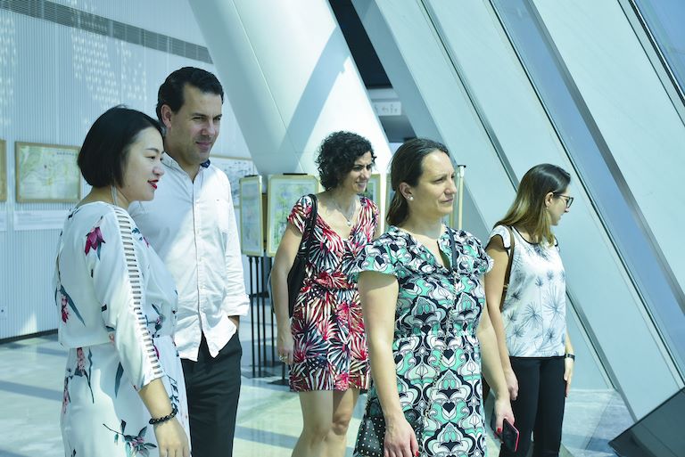 上圖:蒙塞奇部長(zhǎng)一行在講解員的講解下了解重慶母城文化