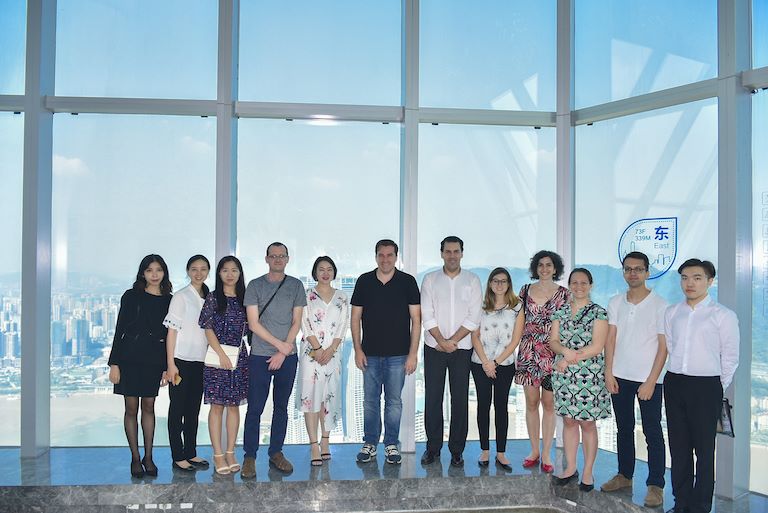 【華迅地產(chǎn)/總經(jīng)辦】8月25日下午,烏拉圭工業(yè)、能源、礦業(yè)部長(zhǎng)吉列爾莫·蒙塞奇先生,烏拉圭駐華大使費(fèi)爾南多·盧格里斯先生,烏拉圭工業(yè)、能源、礦業(yè)部長(zhǎng)部長(zhǎng)助理斯蒂芬妮·格魯瓦德女士,烏拉圭工業(yè)、能源、礦業(yè)部國家能源司顧問巴布洛·卡爾德羅先生,烏拉圭工業(yè)、能源、礦業(yè)部國家能源司顧問巴內(nèi)撒·拉巴迭女士,烏拉圭國家石油汽油燃料管理局規(guī)劃發(fā)展部門貿(mào)易發(fā)展ANCAP經(jīng)理雅米拉·哈娜女士,烏拉圭駐華使館一等秘書阿古斯緹娜女士,烏拉圭駐華使館一等秘書費(fèi)德里科·拉赫先生,烏拉圭二十一世紀(jì)投資和出口促進(jìn)局投資出口部經(jīng)理寶拉·蕾蒂斯女士,烏拉圭駐華使館中秘陳茜女士蒞臨重慶環(huán)球金融中心參觀考察,集團(tuán)租售部營銷總監(jiān)高瑜、觀景臺(tái)運(yùn)營總監(jiān)楊晉陪同參觀,并對(duì)蒙塞奇部長(zhǎng)一行表示熱烈歡迎。