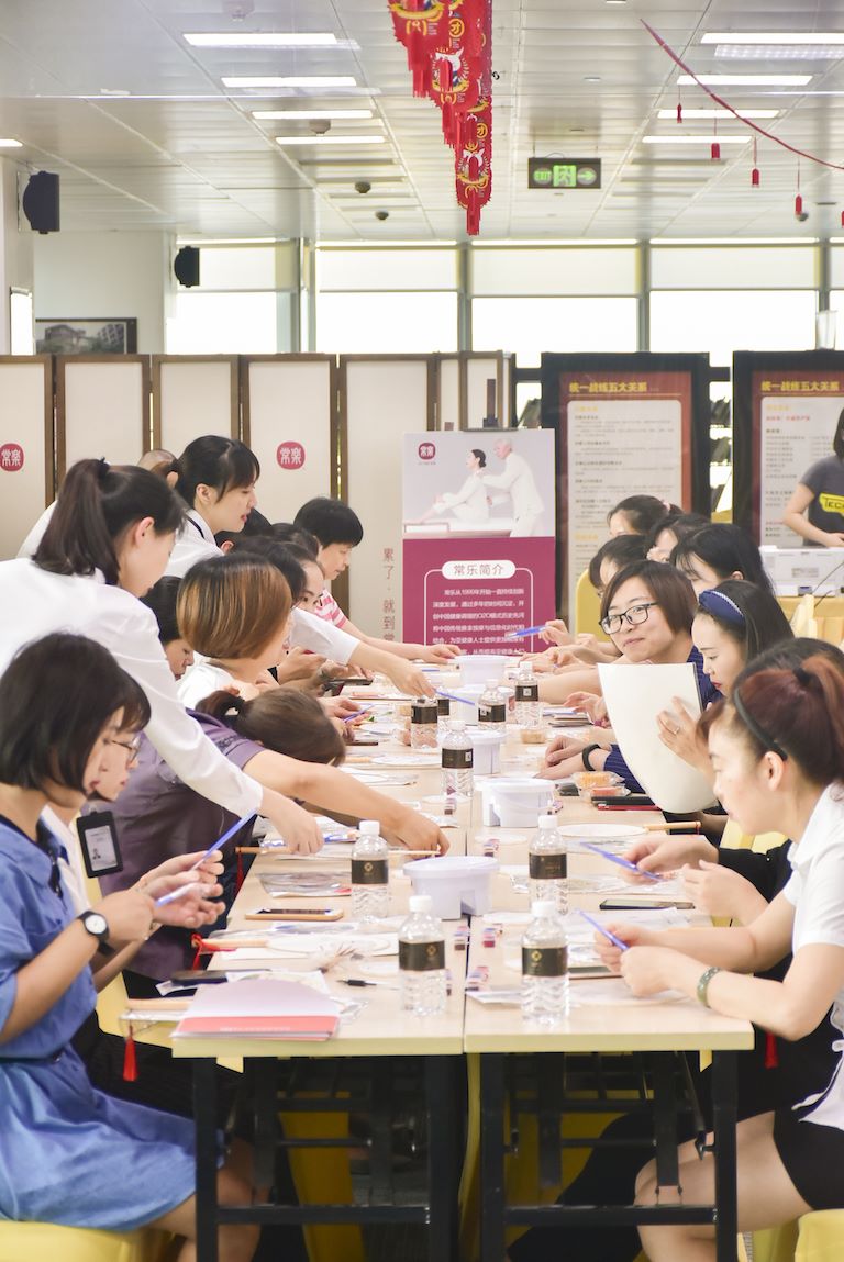 隨后,進(jìn)入到活動(dòng)的重頭戲——DIY手工繪畫(huà)團(tuán)扇。團(tuán)扇又稱(chēng)宮扇,寓意扇圓人團(tuán)圓,一把把純白色團(tuán)扇和五顏六色的漆筆引起了現(xiàn)場(chǎng)客戶(hù)的極大興趣。大家積極全身心的投入到繪畫(huà)中去,一幅幅精美的圖案被一筆一筆地描繪在團(tuán)扇上。